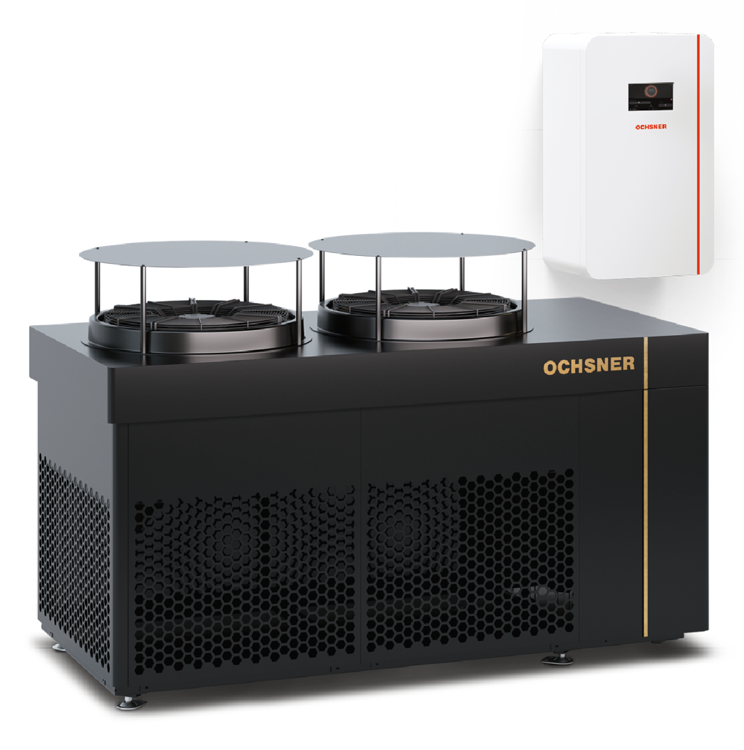 Die Ochsner Horizontal-Tischverdampfer-Technologie in der Monoblock-Wärmepumpe sorgt mit großzügig dimensionierter Wärmetauscherfläche und minimalem Stromverbrauch für höchste Effizienz. Die Ventilatoren sind horizontal gelagert. Sie saugen die Luft von unten an und blasen nach oben hin aus. Daher können sie auch mit geringem Abstand zum Gebäude aufgestellt werden.